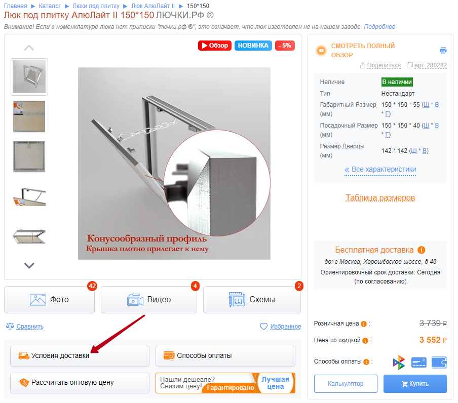 карточке товара